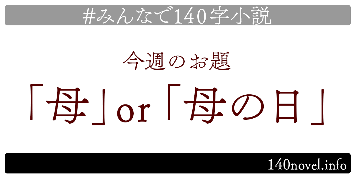 こちらの週まとめページには#みんなで140字小説 #140novelでの呟きを埋め込み表示しています。追加・削除等のご依頼、お題決め&まとめページ編集希望の方は@hatakomaにご連絡ください。