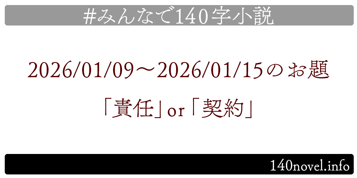 こちらのお題のまとめページには#みんなで140字小説での呟きを埋め込み表示しています。追加・削除等のご依頼は@min140nにご連絡ください。