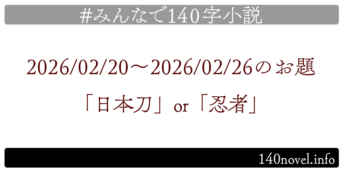 こちらのお題のまとめページには#みんなで140字小説での呟きを埋め込み表示しています。追加・削除等のご依頼は@min140nにご連絡ください。