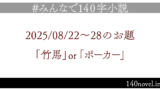こちらのお題のまとめページには#みんなで140字小説での呟きを埋め込み表示しています。追加・削除等のご依頼は@min140nにご連絡ください。